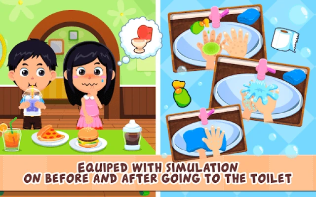 SPECIAL FEATURES # Simulation games designed according to the real condition including from the very beginning step of how kids recognize the need to pee or poop along with the causal consequences up to the process themselves.